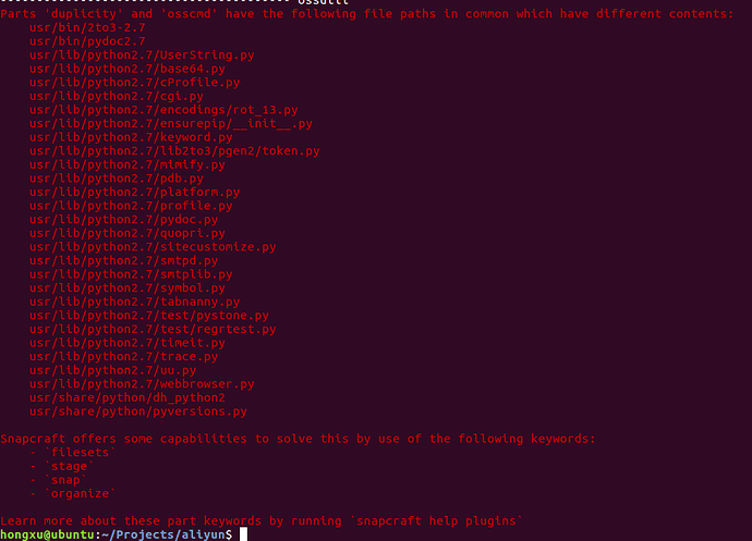 I have two parts with “plugin: python”, and it seems that they have some common python build-in files . How can I handle the conflicts ? Thank you .