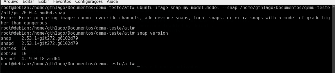 Well, I increased my storage in / and ran, the .snap was created, but I have another problem now, using this .snap to generate img. The mistake is with “a model of grade higher than dangerous”. I didn’t find practical solutions on how to solve it. (With --extra-snaps the flag is not found).