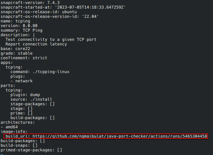 Michel Samia notices that snap package tcping has no info of the maintainer. Also the backend portquiz(dot)net is nowhere mentioned.