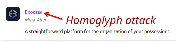 It’s published again with a bit different name. But anyways it’s easily found in App Center by plain ASCII “exodus” query. Maybe because this word is used in the description. Probably mix of different alphabets should be prohibitied? Or at least it should be marked and verified by human?