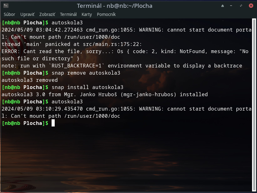 Now everything is tested in snapstore and with local paths. Should work now ok. If you want to download it in zip it is here: https://hrubos.org/repo/autoskola4_and_snap.zip