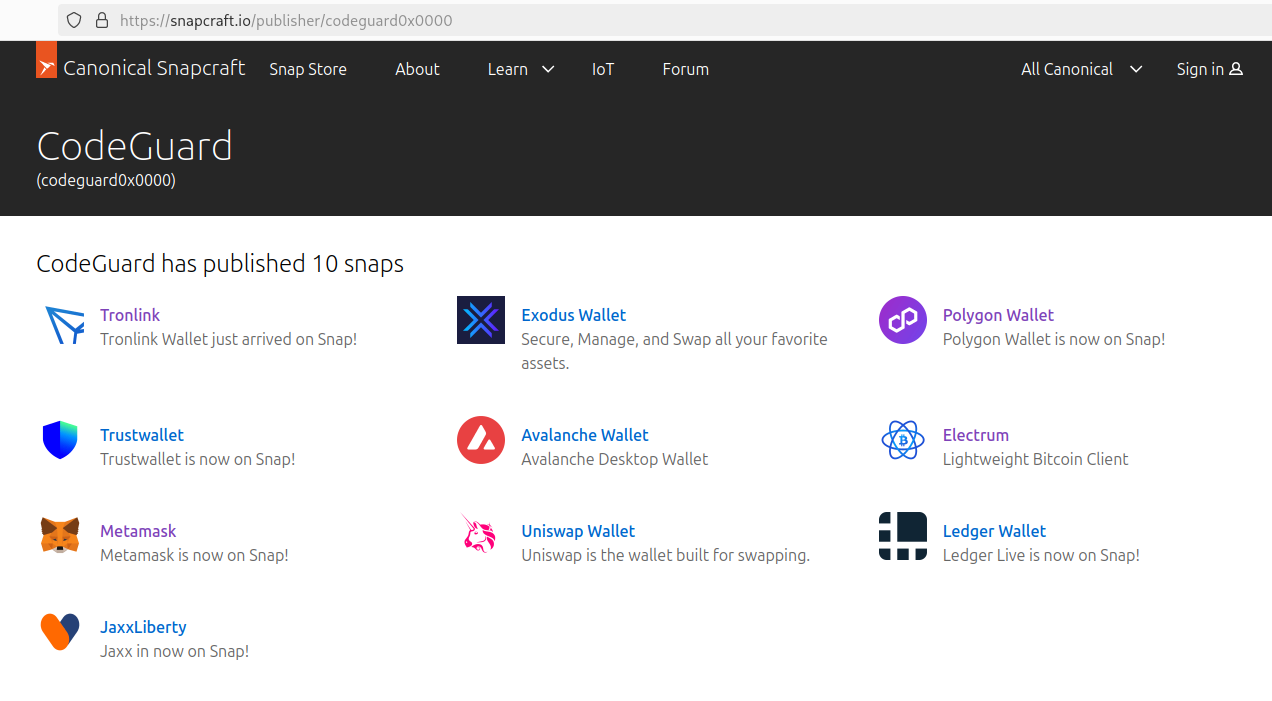 There’s unfortunately been a few instances in the past few months of people abusing the Snap Store to publish cryptocurrency snaps that steal your private keys and by extension money. I.E: