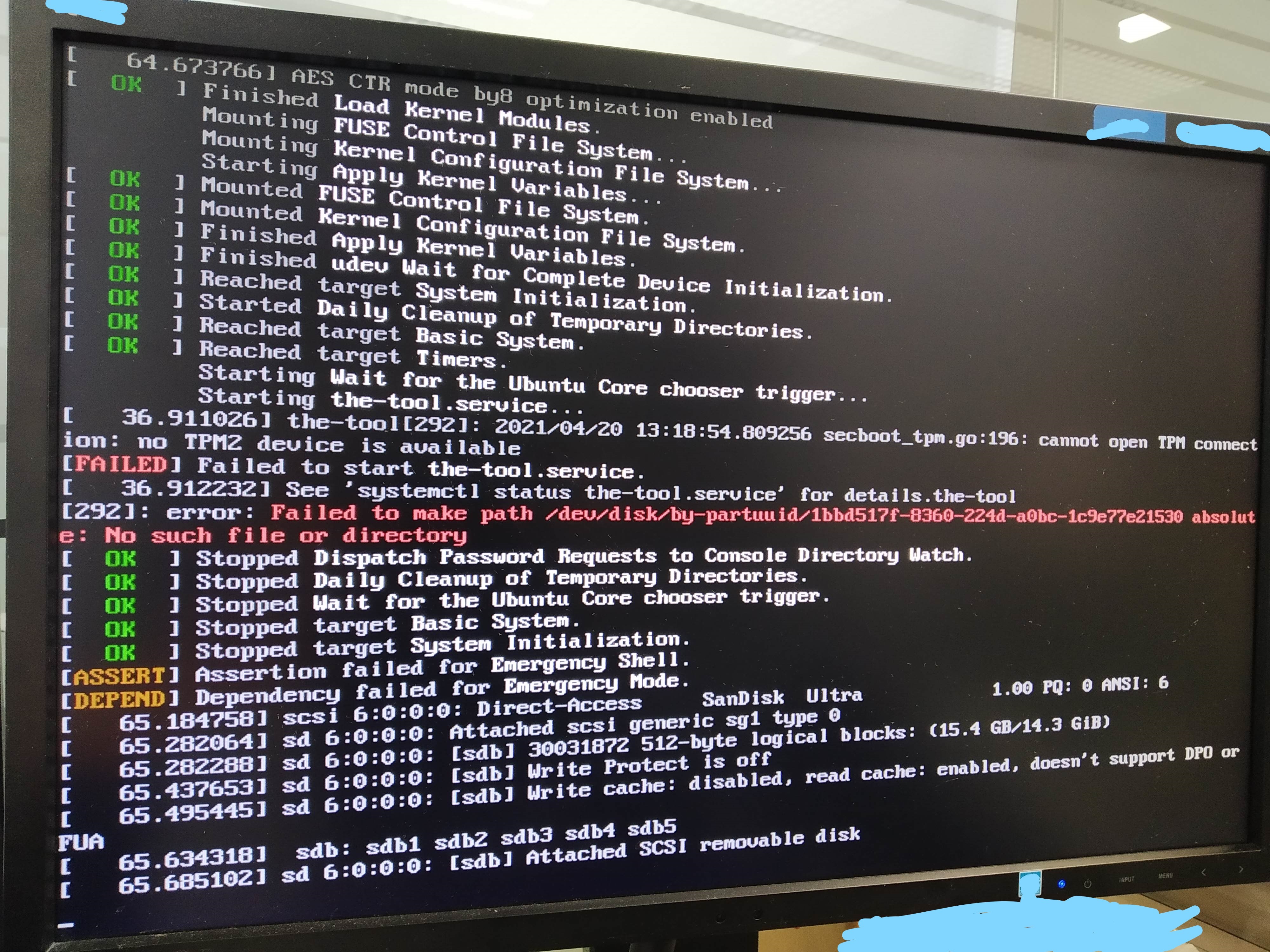 In particular, I have created a bootable USB using the previously mentioned image and then booted my PC from it (in UEFI mode). After the ubuntu-boot error, which I have read that is correct for the first boot of UC20, the following gets displayed: